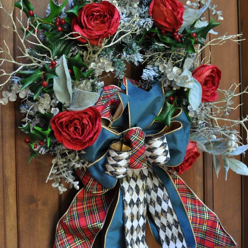 Be the first to review “Harlequin Holly Christmas Rose Wreath”